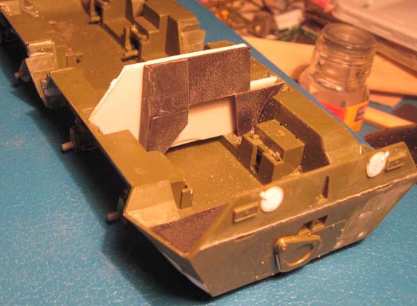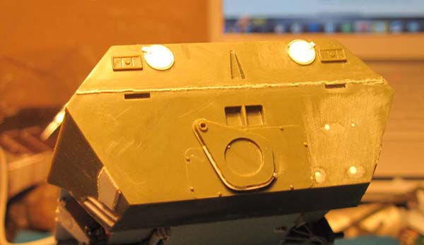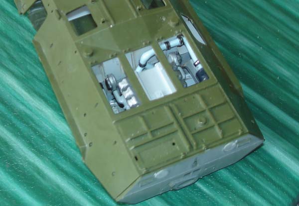 Пришлось ещё доработать левую часть моторного отделения. Затем возьмусь за правую, потом деталирую сам двигатель, установлю его и поставлю позади радиатор. Только после этого - аккумуляторный отсек и далее - боевое отделение.
