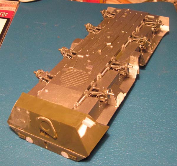 Добавлены от себя некоторые внешние элементы подвески, сделан сварной шов впереди и закрыты шпаклёвкой ненужные отверстия. Загрунтовано серебрянкой.